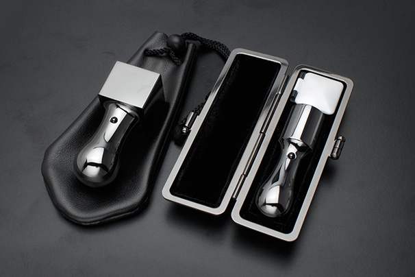 会社でお使いの印鑑に関しては危機管理の面からも経年劣化の少ない印鑑が推奨されています。『イオンプレーティング』されたプレミアムブラックは、先進のマテリアル超金属として、プラチナをしのぐ強度・耐食性・耐久性をほこり、各手続きにご登録いただく実印・角印にとって最適な印鑑材料といえます。もっと詳しく