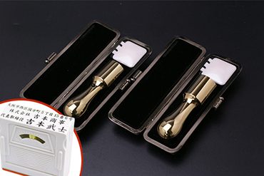 会社でお使いの印鑑に関しては危機管理の面からも経年劣化の少ない印鑑が推奨されています。『イオンプレーティング』されたプレミアムゴールドは、先進のマテリアル超金属として、プラチナをしのぐ強度・耐食性・耐久性をほこり、各手続きにご登録いただく実印・銀行印にとって最適な印鑑材料といえます。もっと詳しく