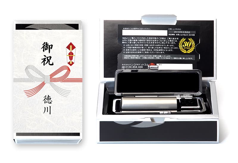 実印と銀行印にそれぞれ印鑑ケースを付けたセットに、ご用向に応じて選べる熨斗をご用意しました。